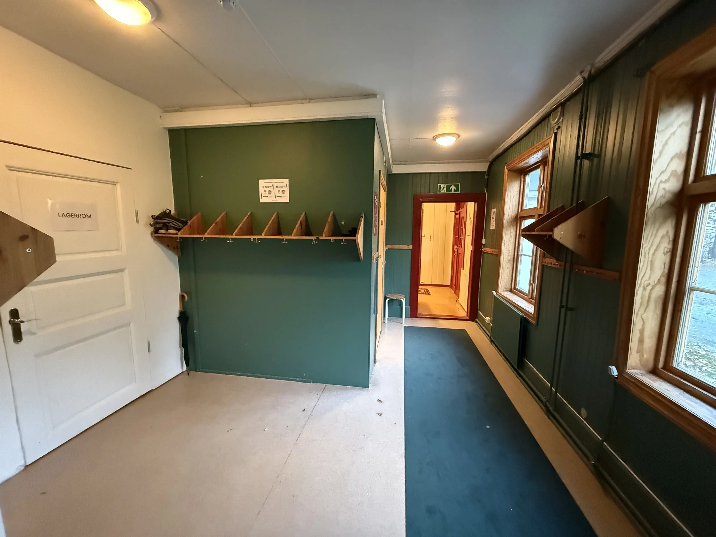 Lagsstua i 1. etg har bord og stoler til 50-60 gjester. Her er et velutstyrt kjøkken, to toalett, egen gang med knagger, lydanlegg og projektor. Hagen, som er offentlig, er også veldig fin – spesielt på finværsdager.